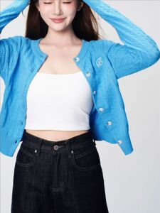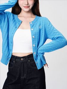 BUBBL 秋季孔雀蓝慵懒风毛衣圆领外套刺绣针织显瘦休闲开衫女