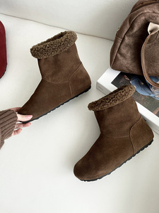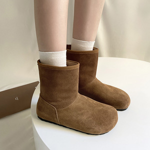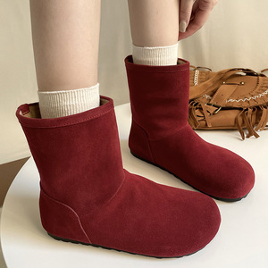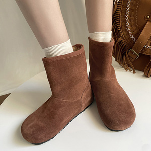牛皮版~ 勃肯短靴复古马丁靴女鞋2025秋冬单靴韩版套筒靴及踝靴子
