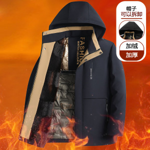 冬季男士棉服棉衣外套加绒加厚保暖休闲可拆卸连帽石墨烯秋冬外套