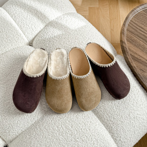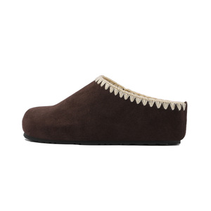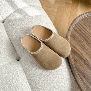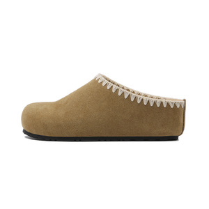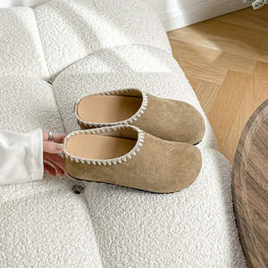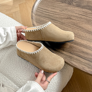 真皮平底勃肯鞋内增高厚底绣线复古row风包头半拖女软皮博肯拖鞋
