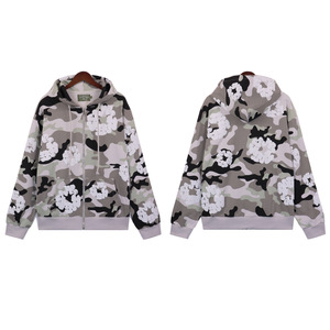 24跨境欧美潮牌满印木棉花发泡加绒连帽卫衣长裤男女高街运动套装