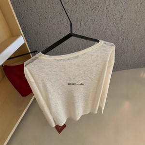 WGWE7375防晒罩衫女2025新款辣妹宽松独特露肩斜肩长袖T恤