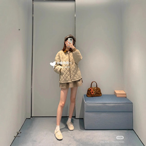 mm撞色翻领夹棉外套贴皮字母螺纹袖口他女25秋冬9月新品宽松外套