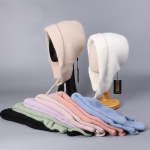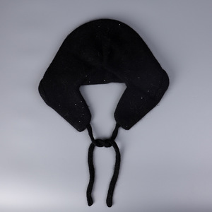 亮片安哥拉兔毛针织帽女冬季双层加厚保暖护耳系带雷锋帽俄罗斯帽