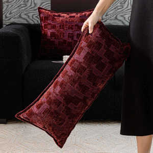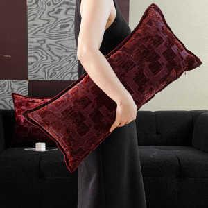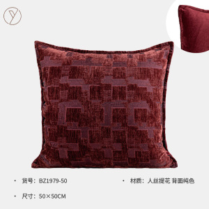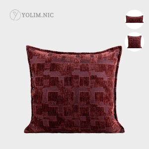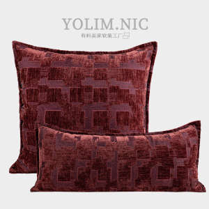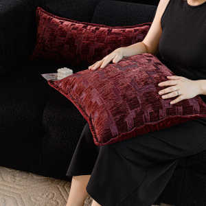 轻奢风高级感抱枕别墅样板间客厅沙发靠枕酒红色绒面方枕腰靠枕