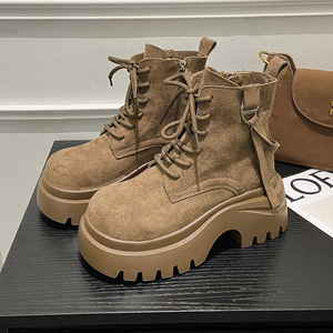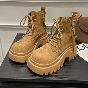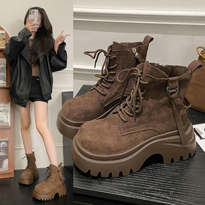 英伦风马丁靴女2025新款秋冬厚底增高小个子帅气机车靴大黄靴短靴
