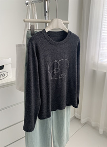 糯叽叽仿羊毛垂感刺绣圆领T恤上衣女慵懒韩系秋冬长袖磨毛感打底
