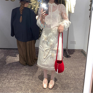 晨雾蕾丝清冷系花边袖透感花纹叠穿上衣2025秋季新款时尚上衣