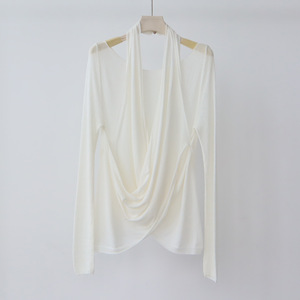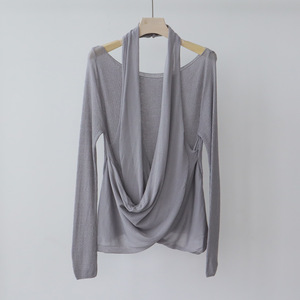 秋季新款女装慵懒风高级感挂脖假两件针织衫女长袖收腰廓形上衣女