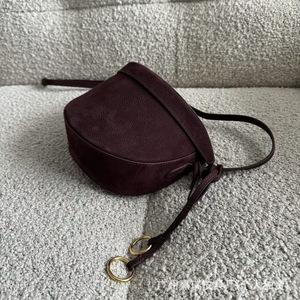 头层麂皮~ins新款小众设计感粒纹绒单肩斜挎包简约潮流马鞍包真皮
