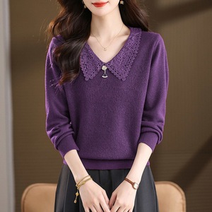 2025秋冬新款设计感娃娃领减龄羊毛针织衫打底毛衣潮漂亮早秋上衣