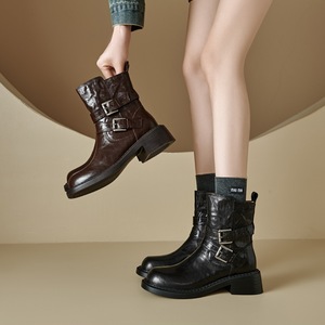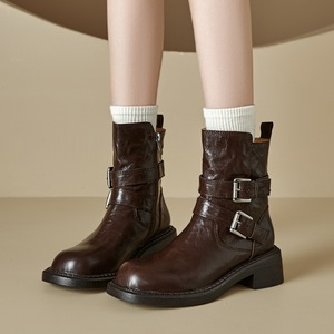 英伦风棕色短靴女秋冬2025新款靴子粗跟马丁靴皮带扣女靴