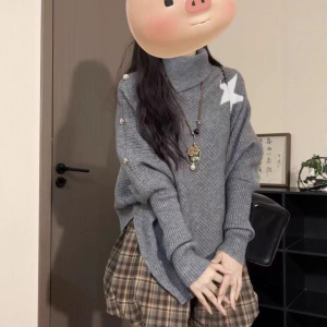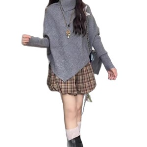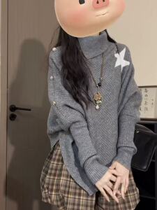 法式不规则设计感宽松小众斗篷高领星星毛衣披风感针织衫女潮