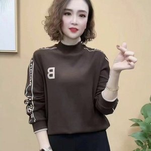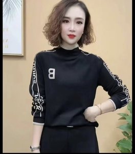 一件代发正宗德绒2025秋季新款时尚拼色半高领字母印花打底衫女装