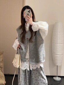 韩系氛围感穿搭灰色马甲女2025春秋新款感叠穿坎肩针织外搭
