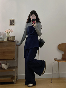 大码2025秋季新款胖mm时尚绑带上衣吊带高腰显瘦三件套女