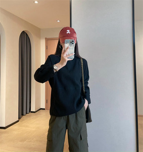 休闲随性宽松显瘦轻量感华夫格面料高领连帽卫衣女2025秋
