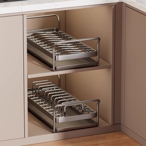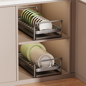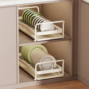 厨房碗碟置物架橱柜内抽屉式收纳架拉篮抽拉放碗盘子沥水架多功能