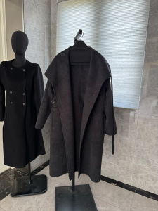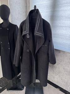 H家秋冬新款复古立领日系气质休闲款双面毛呢外套 羊绒长款大衣女