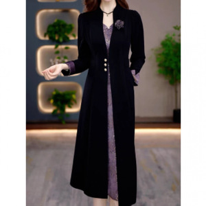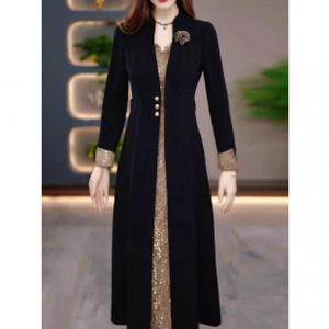 中老年女假两件连衣裙秋季新款优雅轻奢修身显瘦时尚立体花长裙女