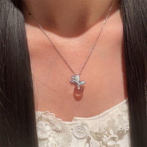 小红书爆款滴釉蝴蝶项链女气质复古高级感圆珠吊坠ins百搭锁骨链