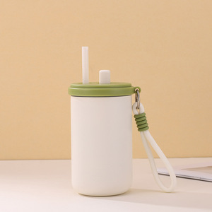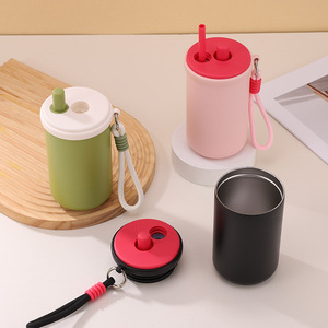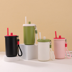 吸管保温杯316不锈钢高颜值咖啡杯子女学生可爱便携水杯批量定制