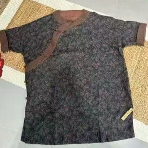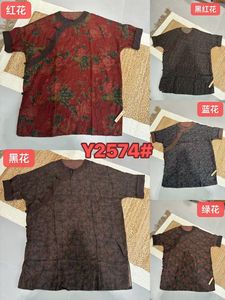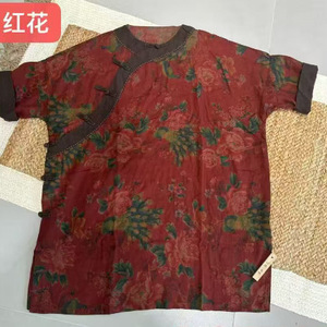 2025 秋新款文艺中式斜襟盘扣圆领亚麻衬衫 印花复古风衬衣女
