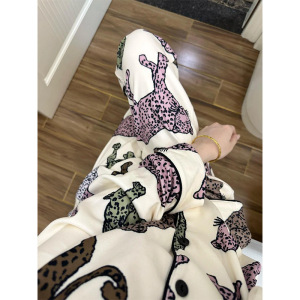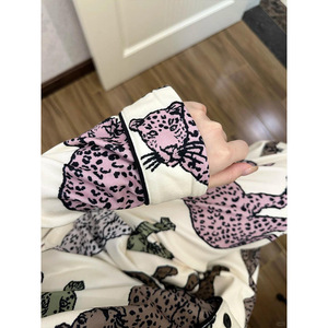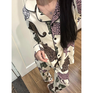 韩版轻奢花豹印花睡衣女秋冬新款大码长袖长裤套装可外穿家居服