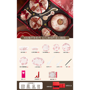 浪漫序章-12人食58件配砂锅【高定云锦礼盒装+红色丝带】