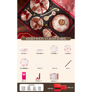 浪漫序章-4人食18件配汤碗【高定云锦礼盒装+红色丝带】