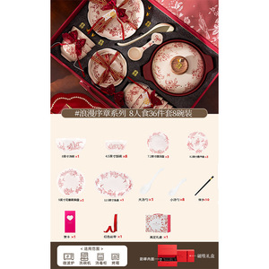 浪漫序章-8人食36件配汤碗【高定云锦礼盒装+红色丝带】