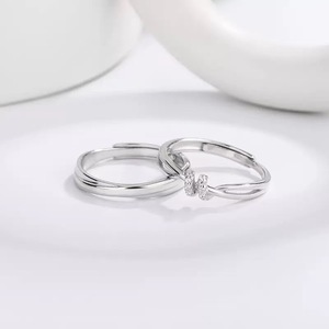 S999纯银爱意交织情侣戒指小众设计轻奢男女对戒简约情人节礼