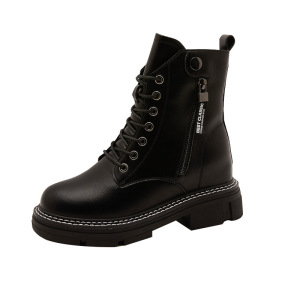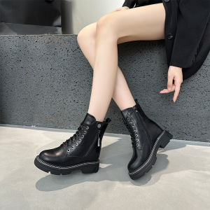 2025秋季新品真皮马丁靴女韩版侧拉链女式皮靴子厚底系带休闲鞋女