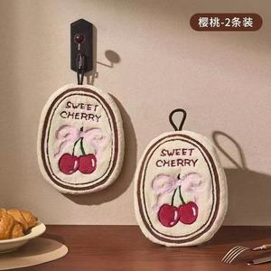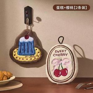 新款擦手巾蓝色樱桃蛋糕挂式厨房卫生间吸水加厚可爱卡通蛋糕毛巾