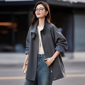 撞色风衣外套女春秋2025年新款中年妈妈宽松大码显瘦百搭休闲上衣