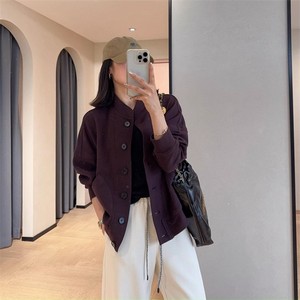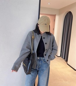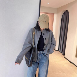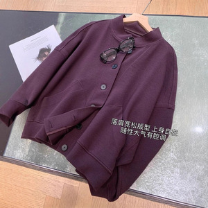 EE923休闲减龄高密度棉落肩袖宽松单排扣短款卫衣外套女2025秋