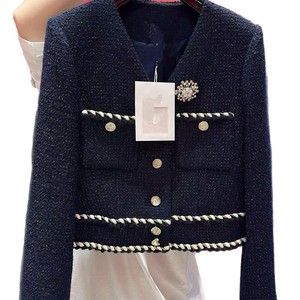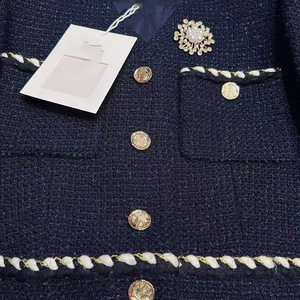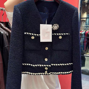 南油直供 2025秋冬经典V领撞色修身显瘦外套洋气立体钉钻胸针上衣