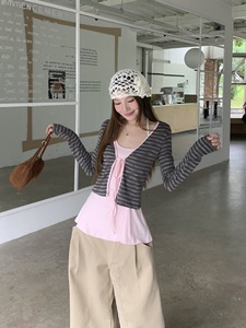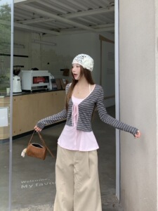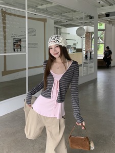 韩系复古条纹开衫外套女秋季2025新款少女感穿搭外搭披肩短款上衣
