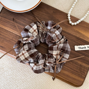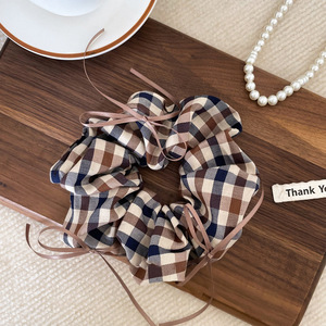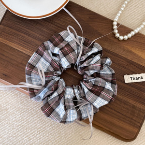 韩版学院风简约格子丝带蝴蝶结大肠发圈女马尾丸子头扎发头绳发饰