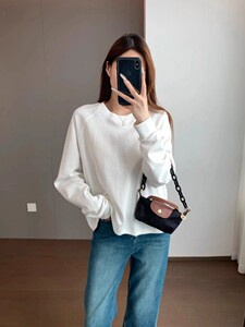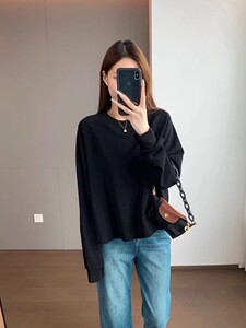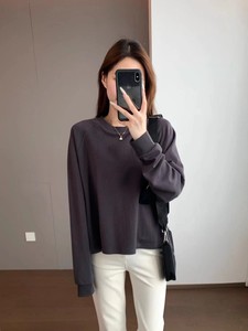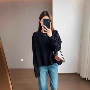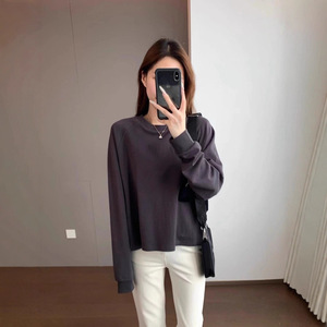 A29923长绒棉 柔软蓬松顺滑宽松短版圆领螺纹拼接插肩袖纯色卫衣