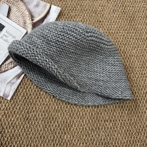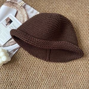 出口韩国针织卷边水桶帽子女秋冬季复古咖色百搭渔夫帽大头围盆帽