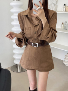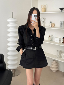 工装风套装裙女气质长袖衬衫+半身短裙两件套