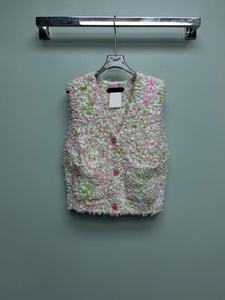 南油高定2025早秋新款V领粉色小香风马甲背心甜美洋气