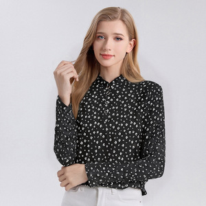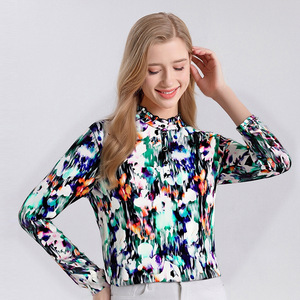 华业秋季真丝立领印花长袖T恤桑蚕丝大码时尚休闲套头打底衫上衣
