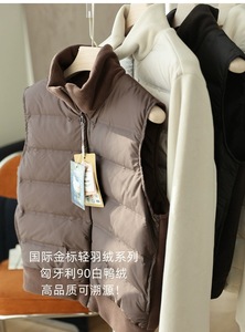 国际金标羽绒!匈牙利90白鸭绒立领羽绒马甲颗粒绒外套女秋冬新