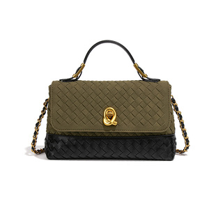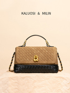 2025新款麂皮编织包时尚潮流绒面斜挎链条邮差包翻盖手提包信封包