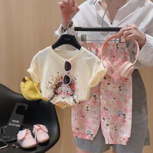 夏款女童时尚洋气新款套装夏季卡通休闲防蚊裤小女孩时尚套装