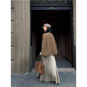 千金风棕色毛呢斗篷短外套女秋冬季设计感内搭连衣裙两件套装