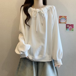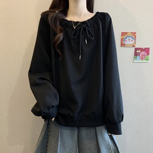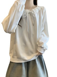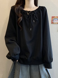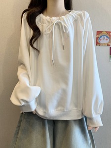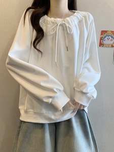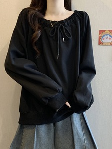 2025秋季新款女装韩系胖MM抽绳一字肩女士卫衣显瘦长袖上衣A7566