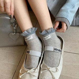 白色花边中筒袜女夏季薄款布标可爱miu系芭蕾风短袜2025新款爆款